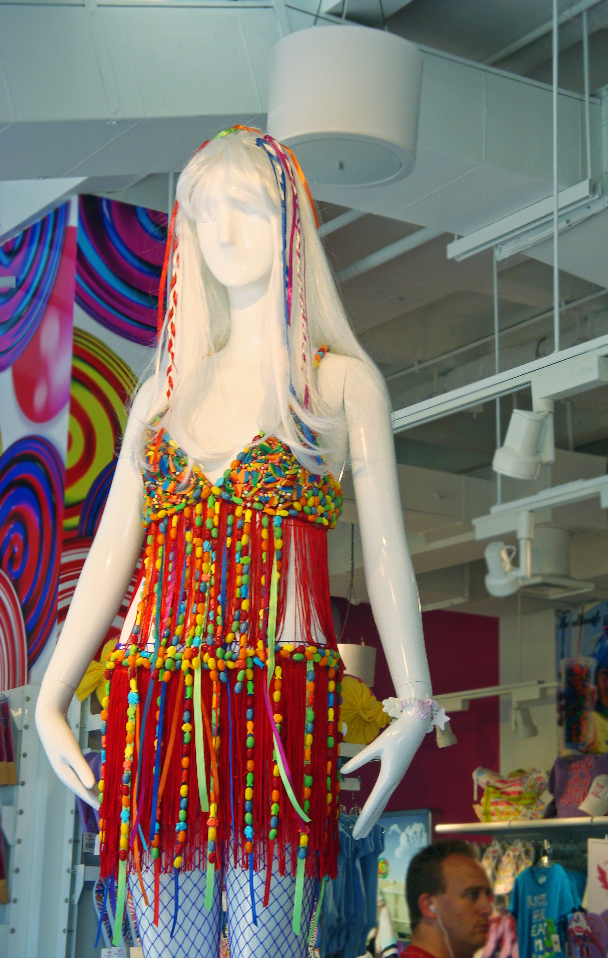 It goes without saying that the majority of the people visiting the store were there for the 5lb gummy bears and Nerds cereal boxes, but I was primarily fixated on the candy corsets and Lolita-esque Twizzler wigs.