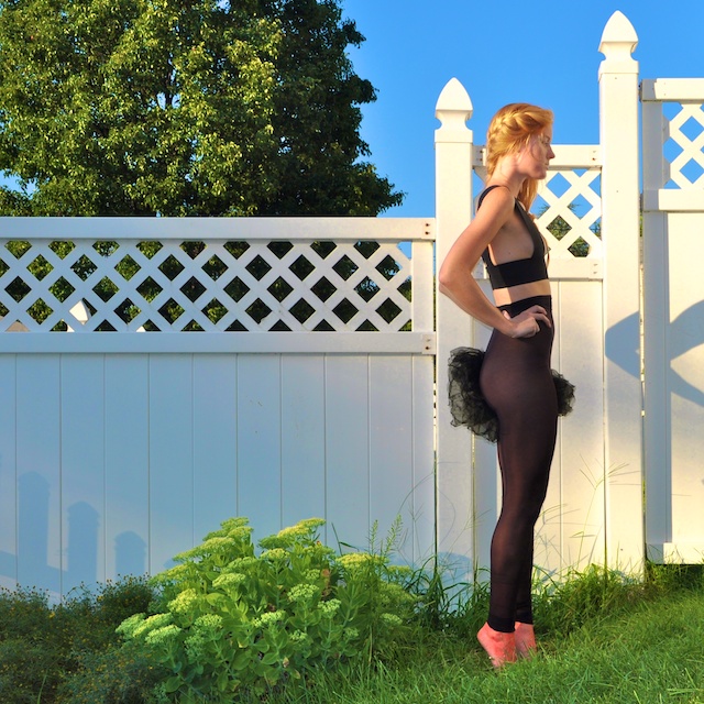 The Cream Puff Tights had a real wow-factor for me. They’re high-waist tights with chiffon puffs meant to exaggerate your “bush and tail.” Indeed…