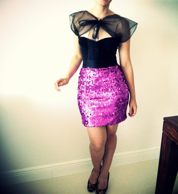 Purple Sequined Pencil Skirt by Carolina Benoit