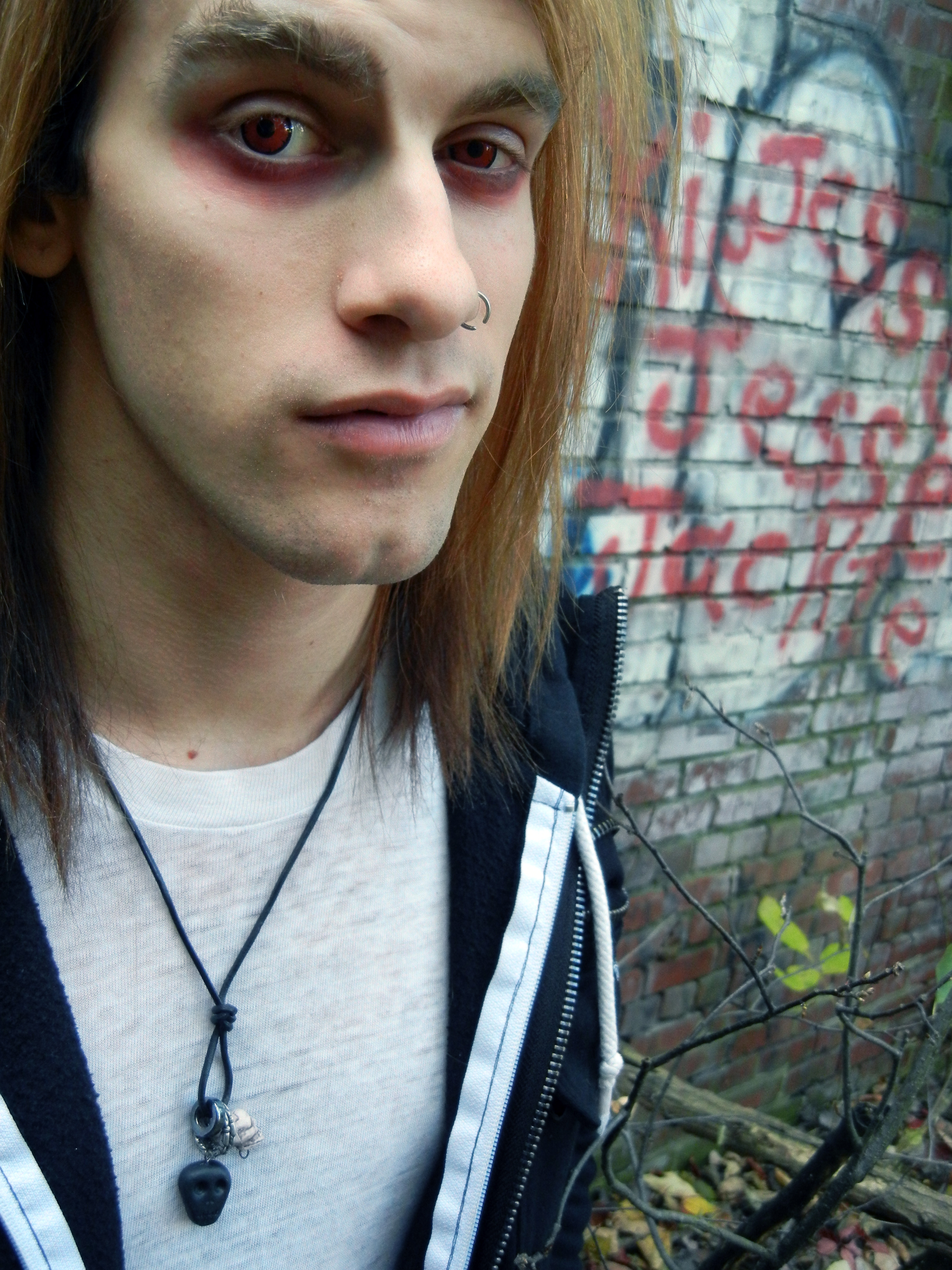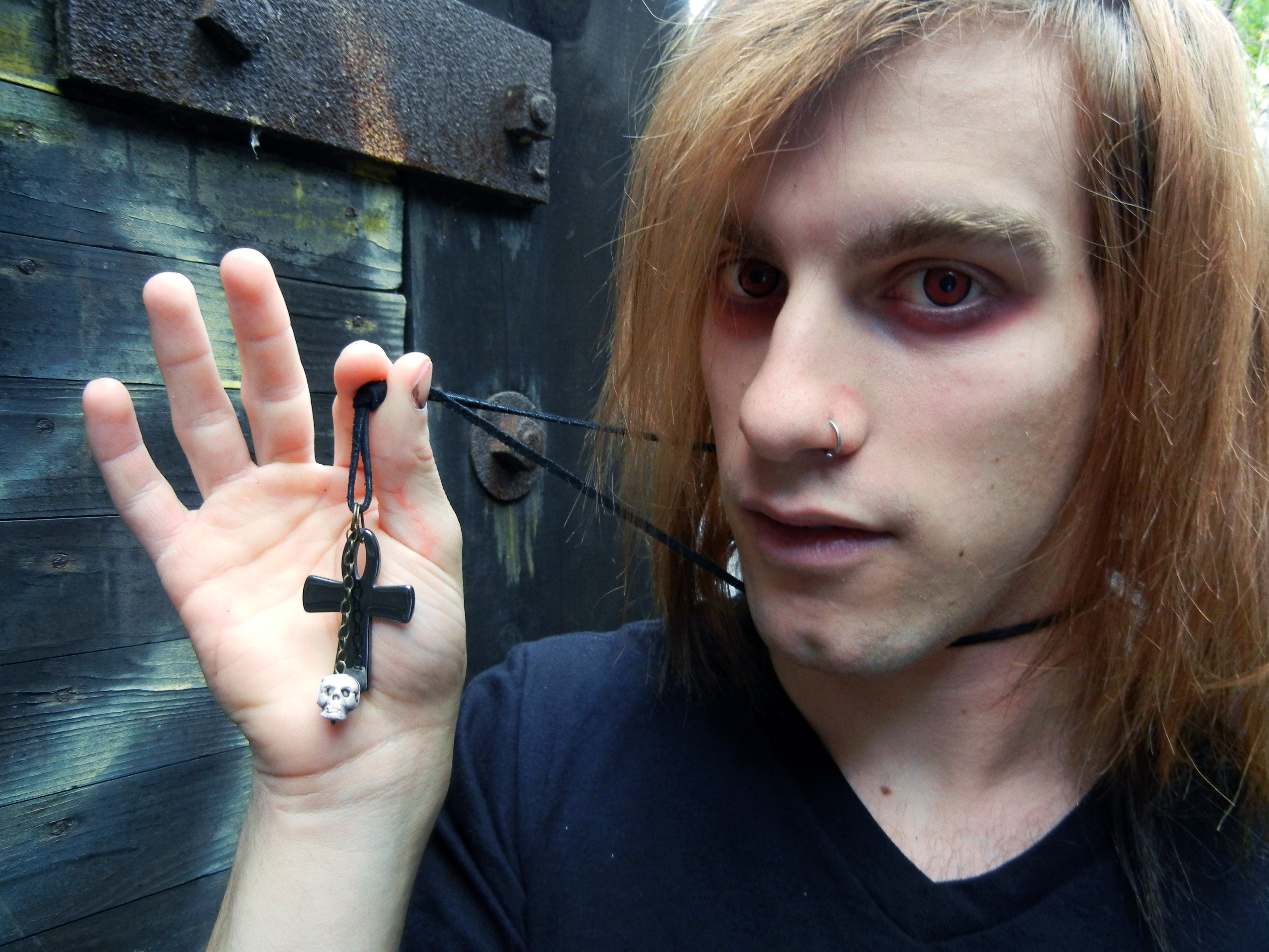 How the heck have I gone this long without bringing vampires onto the blog? I have no idea. Recently I’ve been having a lot more fun dressing up dudes than chicks, so I vamped one up to model some of my necklaces.