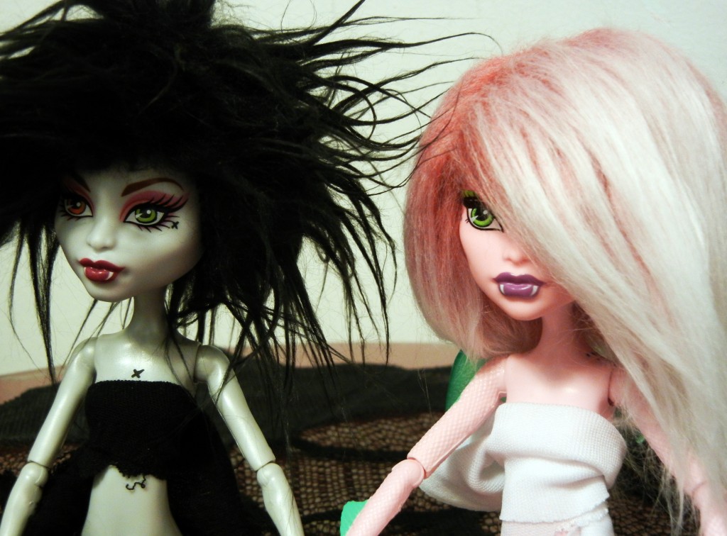 In other hair news…my first doll got itself a sister, which I can finally unveil now that I finally got its wig from Monstro Designs. Got these two Monster High dolls set up with their custom handmade wigs, now it’s time to outfit them, and get the one on the right a little custom-made top hat…