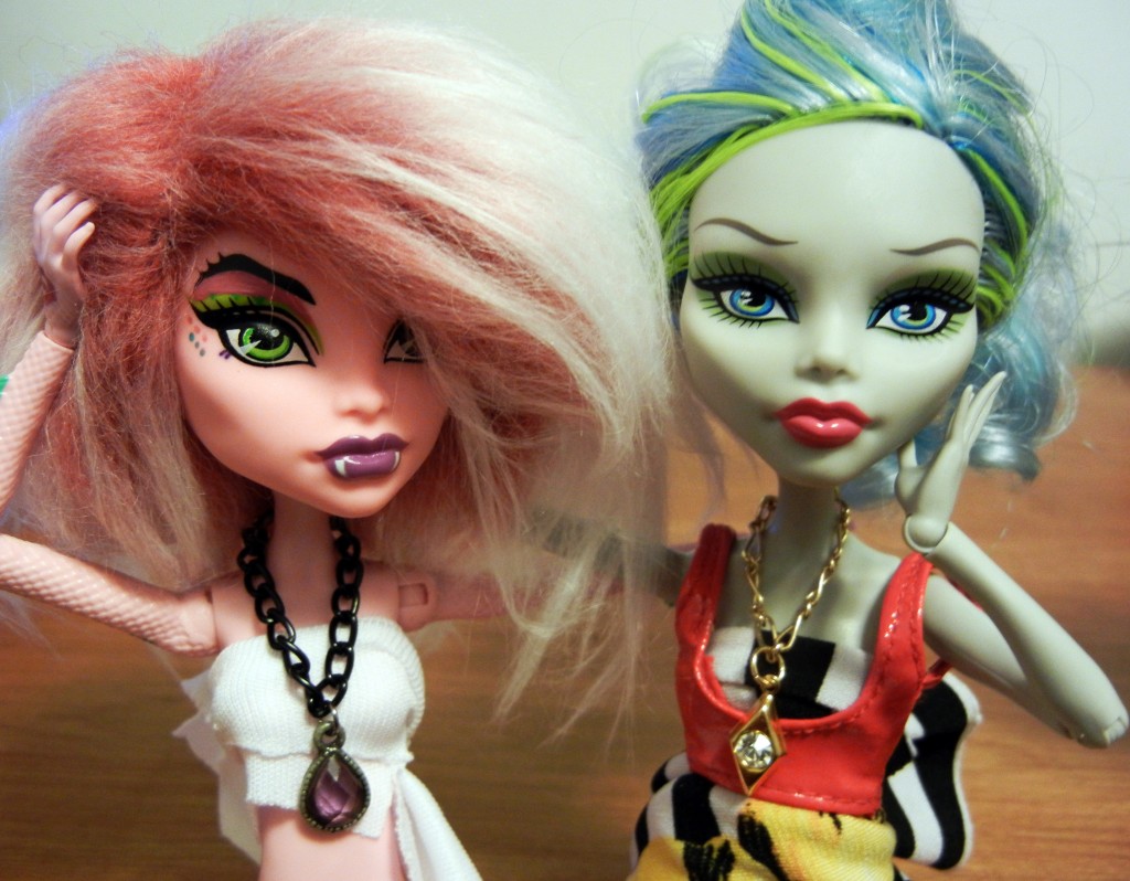 As for Christmas presents, I’ve got just a few more to buy, but I’m just about finished with the handmade ones. Here’s a look at some of the tiny doll jewelry I made for my friend’s Monster High dolls.