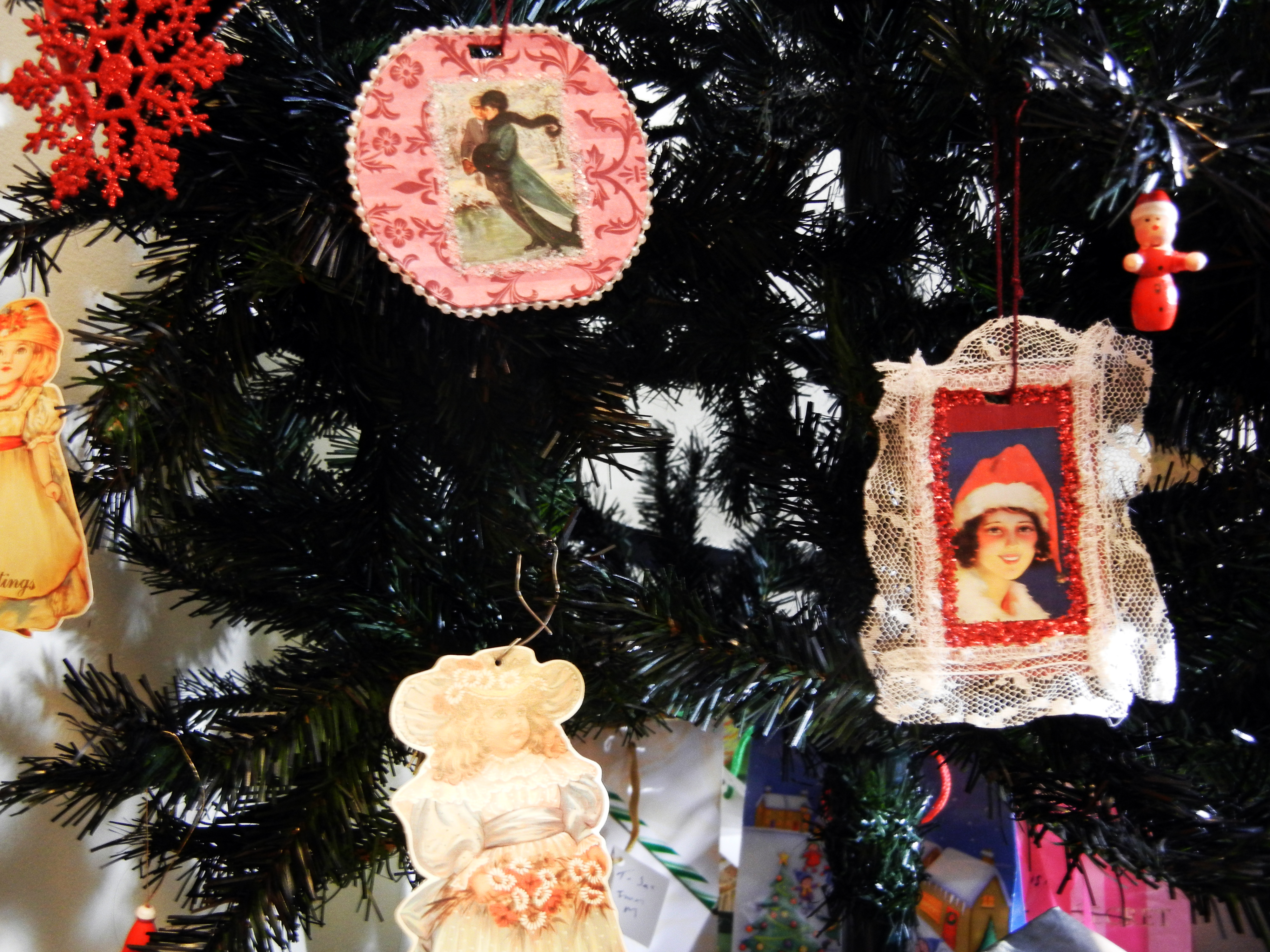 I got this tree a few years back, when I was a poor grad student (insert sad violin music) and at the time I decided to make all of my ornaments, basically out of cardboard, lace, craft paper, and cutouts from Victorian Trading Company catalogs. I’m living the high life now (-_-) and can buy my own ornaments, but I kinda like my handmade ones more than the store-bought.