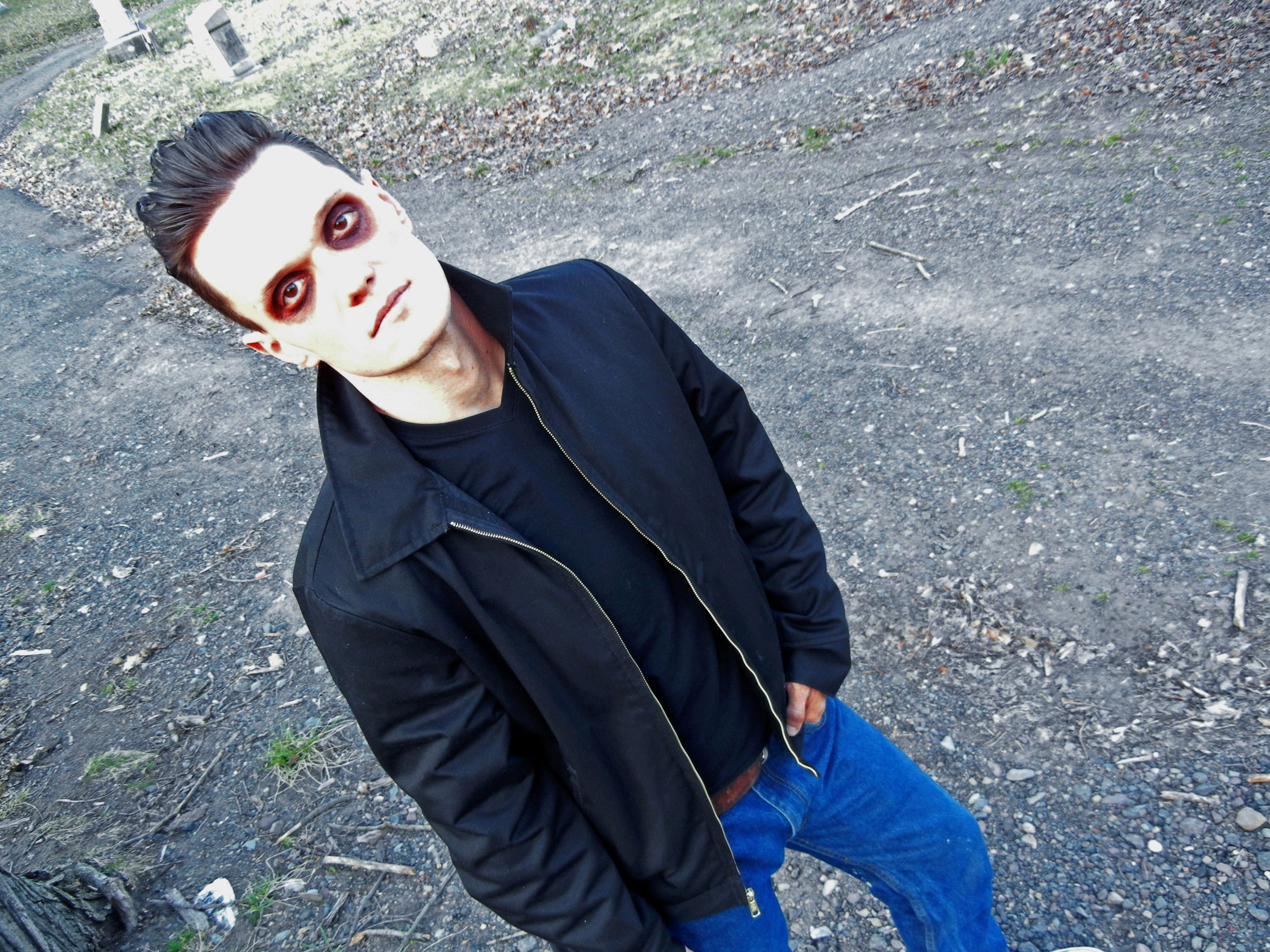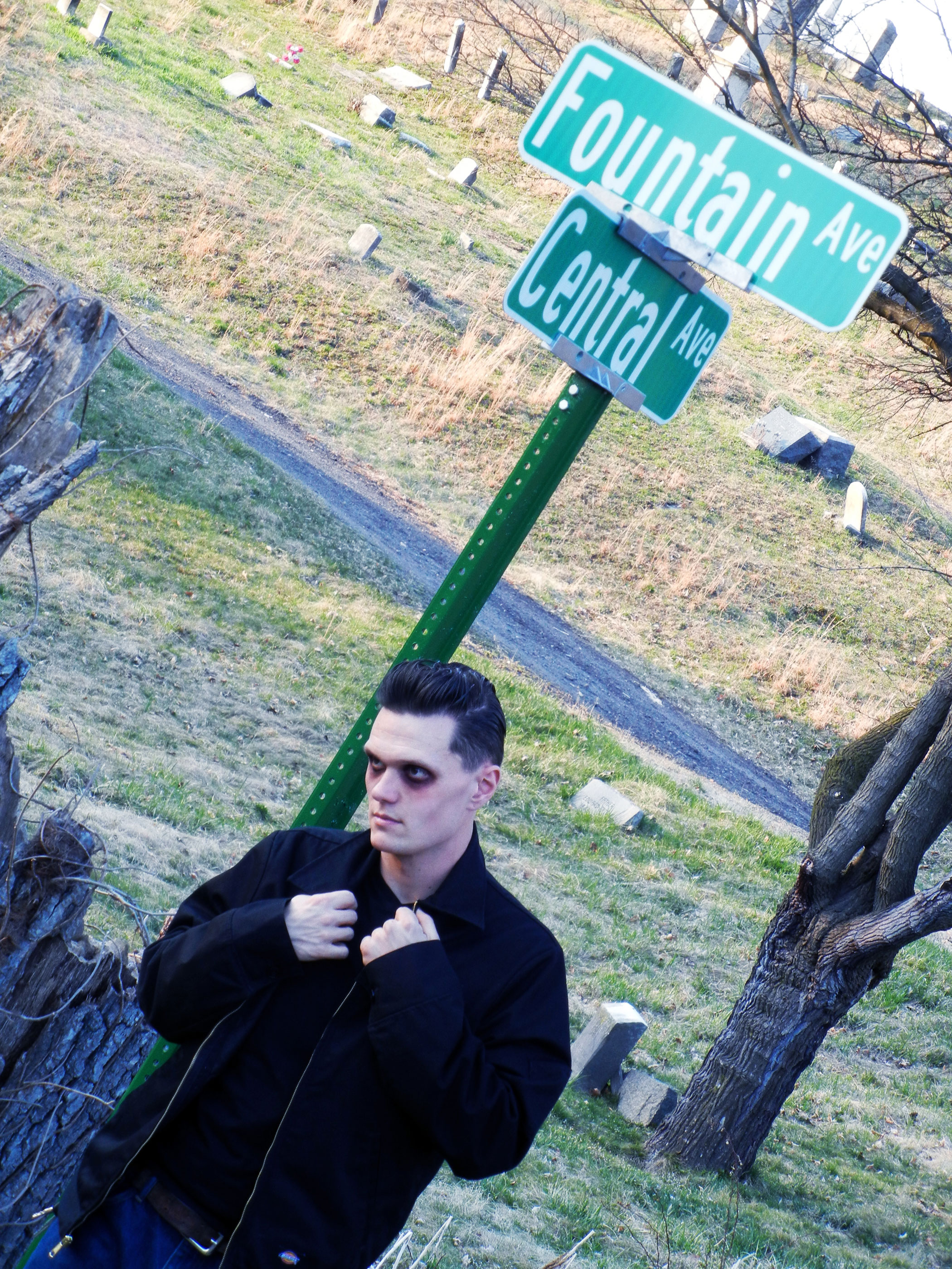 The pep talk before the shoot went like this: “You’re an undead rockabilly ghoul…go creep around the cemetery like it’s your home.” And then I’m pretty sure the words “look evil, and like you think you’re cooler than everyone” came out of my mouth as well.