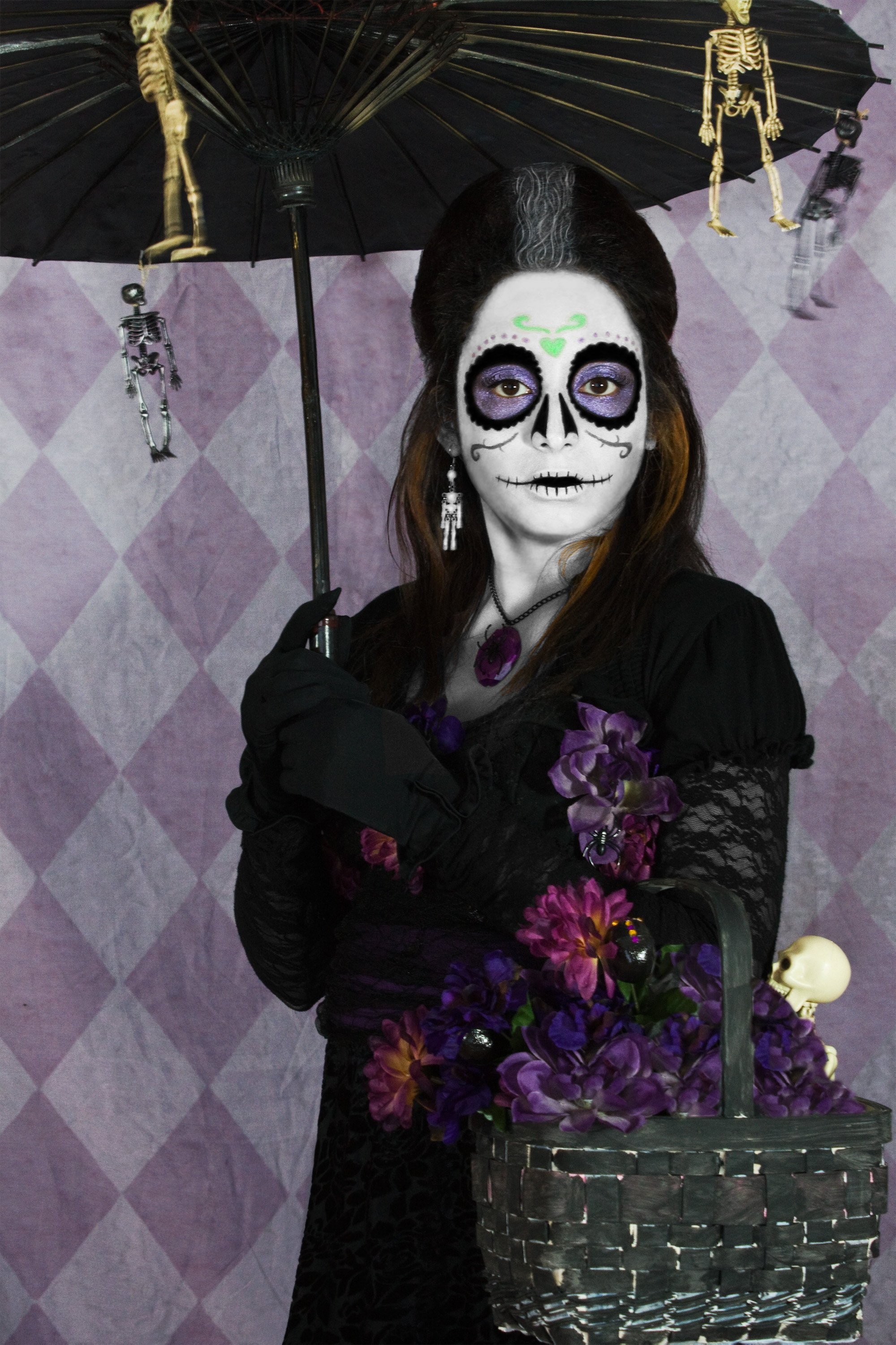 If you’re doing your own makeup and actually want it to last through the night, Mehron brand theatrical makeup, my friend. That was my go-to when I created this sugar skull look. Their pressed powders, Creamblend Sticks, and Makeup Sealer Barrier Spray are products I can vouch for and would undoubtedly use again for any ornate or makeup-heavy looks.