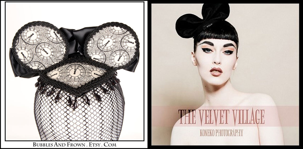 Bubble and Frown and The Velvet Village offer incredibly classy and sophisticated takes on the iconic mouse wears. These would make beautiful burlesque pieces, or else bold evening-wear statement makers.