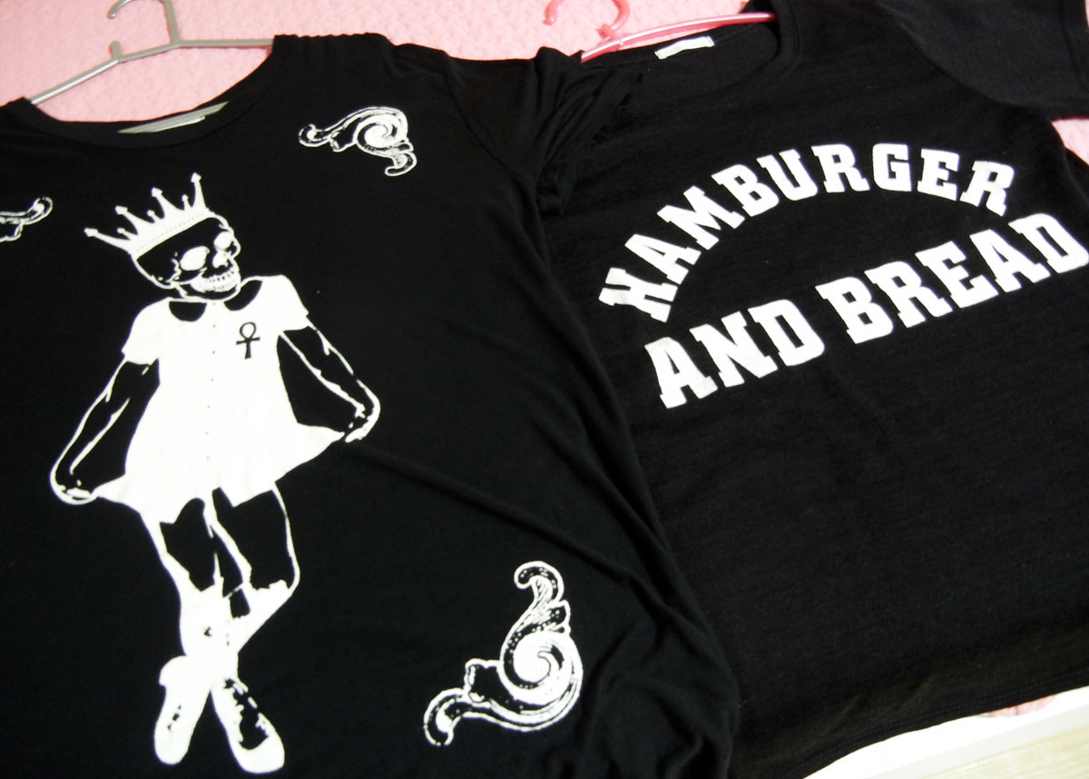 I’ve been amassing a nice collection of shirts that have wonderfully random English phrases on them. This “Hamburger And Bread” tee is my most recent purchase, but you can expect to see many of the others in future posts. I’m especially happy about that skeleton tee I scored, because while I snagged it for $5 in Gangnam station, I definitely saw the the exact same shirt being sold for $25 at a nearby goth boutique.