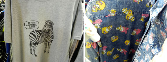 In order to find the gems, however, expect to dig through overstuffed racks and push through crowds of determined shoppers. Also, you have to fine-tune your ability to guestimate. Korea is a big fan of the “one size fits all” and even when sizes are available, Korean sizes and US sizes are two different things entirely… If you have a large chest especially, pay close attention to the stretch and cut of the designs.