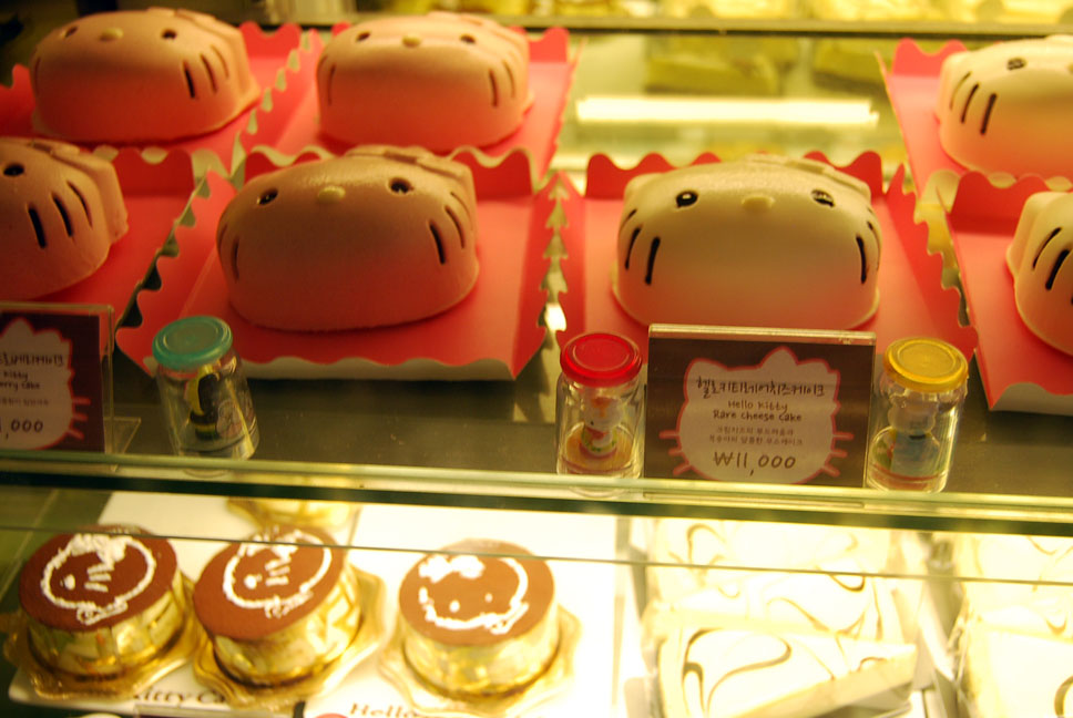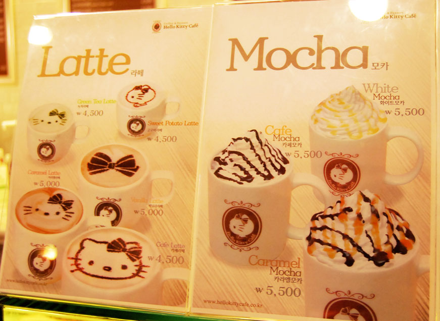 Seoul Hello Kitty CafeAs for the cafe’s culinary offerings–they’re as cute as you could imagine–kitty cakes, kitty waffles, and finely stenciled kitty lattes.