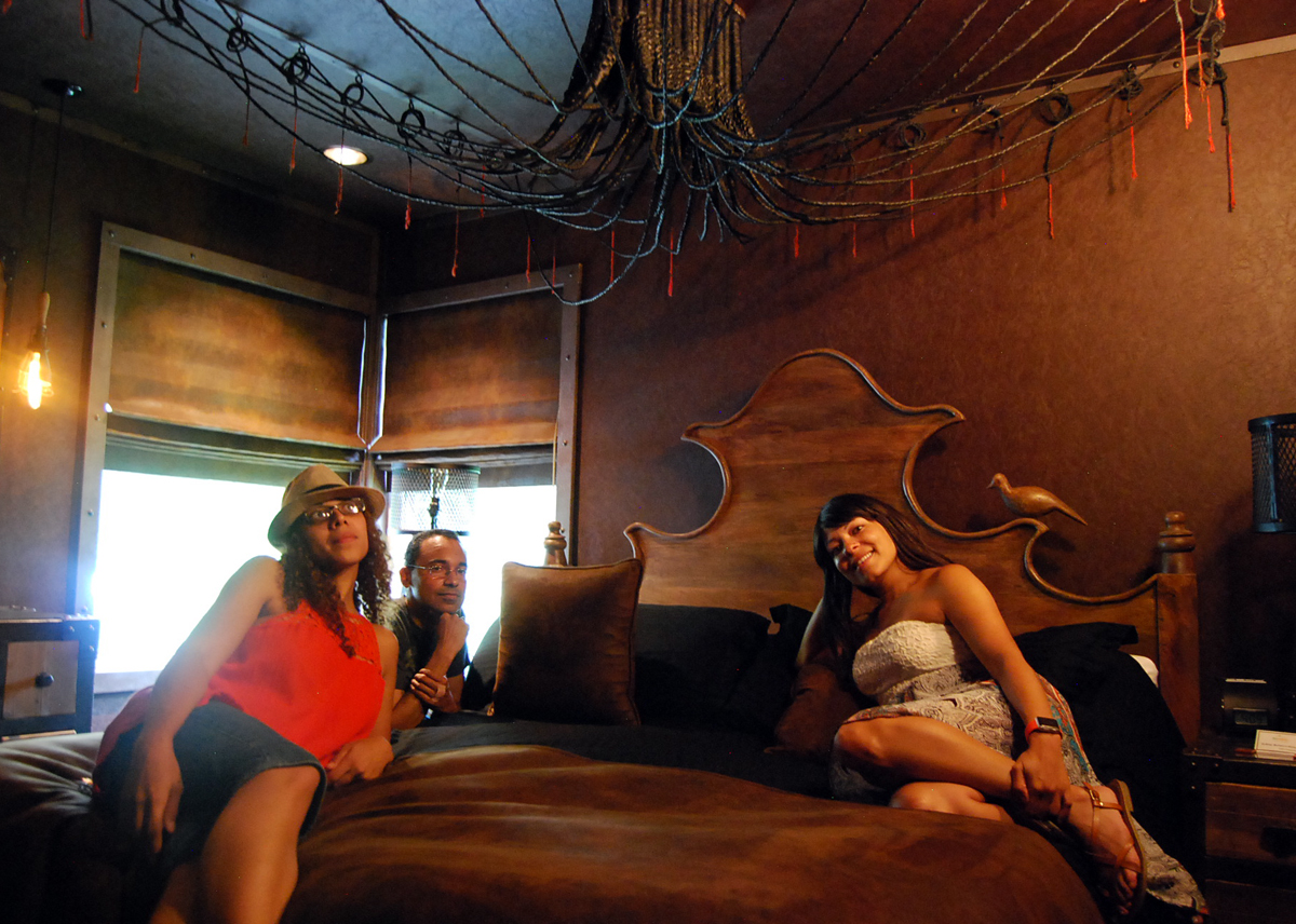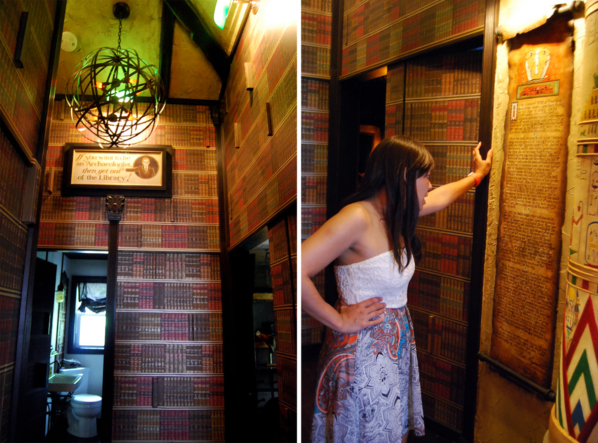 2817Each of the three bedrooms in  The Digs also has its own specific theme. There’s the explorer room, the regal room, and the secret bedroom. The explorer room is an obvious homage to Indiana Jones (though I suppose someone could easily mistake it as the S&M room), decorated with a collection of whips and even Indy’s signature hat. The regal room features gold-accented Egyptian-inspired furnishings and even a royal throne.